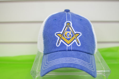 HATS/ MONOGRAM Blue /White Mason Hat White Mesh