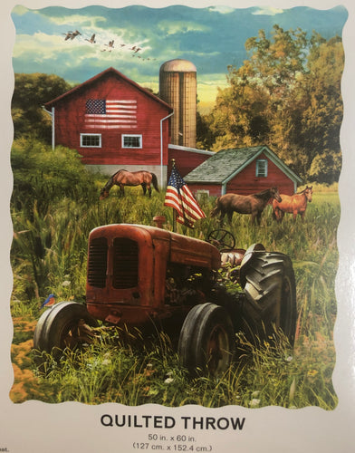 Bereavement Gifts and Quilts Old Barn with Tractor and Horse Quilted throw
