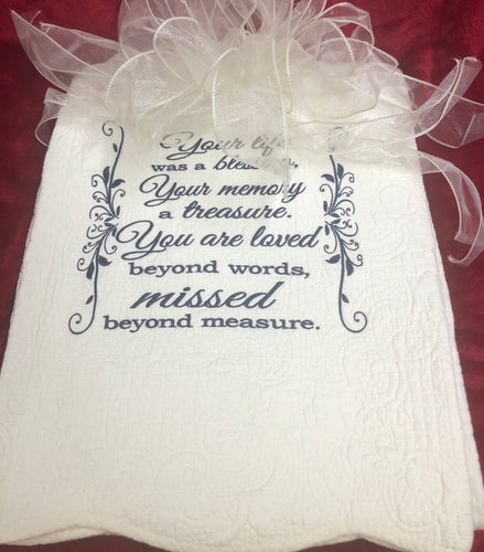 Bereavement Gifts and Quilts HANDKERCHIEF EMBROIDERED/MEMORIES