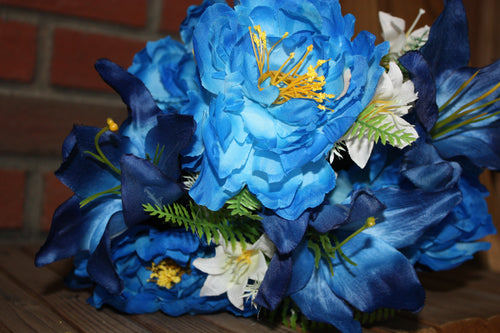 Memorial Cemetery Flowers BLUE AND WHITE PEONY,TULIP, MIX BUSH