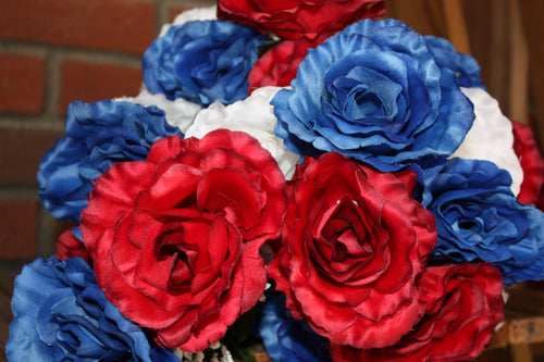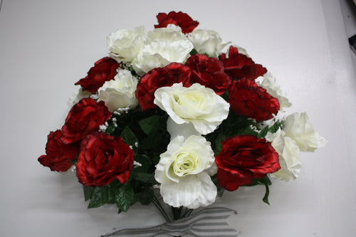 Memorial Cemetery Flowers LARGE OPEN SILK ROSE BUSH/Red/Cream