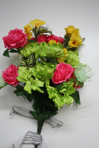 Memorial Cemetery Flowers Large Butterfly Bush-Rose-Peony- Bright Pink/Lime Green