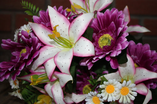 Memorial Cemetery Flowers LILY AND GERBER DAISY BUSH