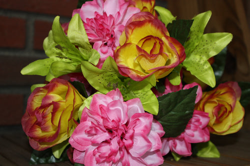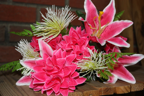 Memorial Cemetery Flowers LILY, ROSE, DAHILA. BUSH