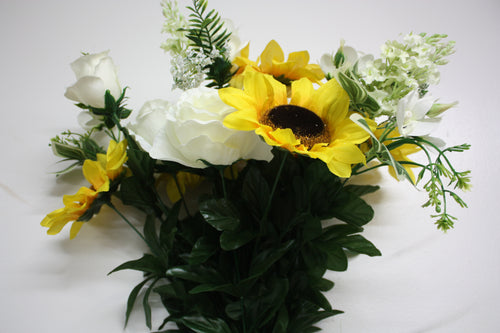 Memorial Cemetery Flowers Long Stem Sun Flower/ White Rose Bush