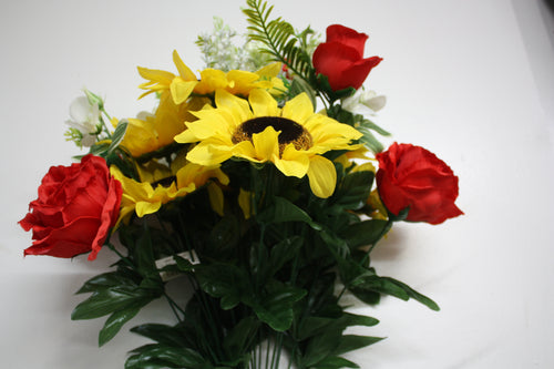 Memorial Cemetery Flowers Long Stem Sun Flower/ Red Rose Bush