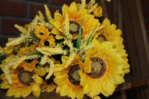Memorial Cemetery Flowers YELLOW SUNFLOWER BUSH WITH FILLER