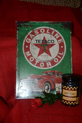Texaco Moto Oil Metal Sign w/Candleberry Candle & Rose Gift Set
